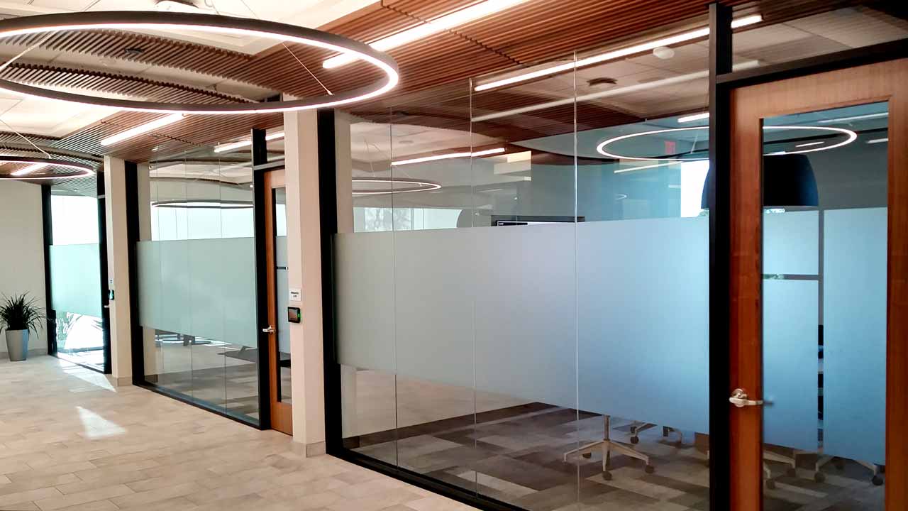 装饰膜是创造办公室隐私的一种简单而经济的方式。 磨砂窗膜在私人办公室和会议室效果很好,可以防止人们看到重要的会议。遮光窗膜也可以用来临时隐藏正在施工或正在装修的区域,让员工和客户不必看到混乱!